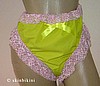 Very sexy and sassy brief. The entire brieft is made with soft latex rubber and it is semi-SEE-THRU. The entire brief is lined with lovely pink/white lace to give you that extra luxury accent. Front bow adds the additional feminine touch. waist is stretchable with reinforcing stitches. The material is very durable and will last. Hand wash only.