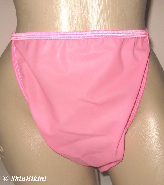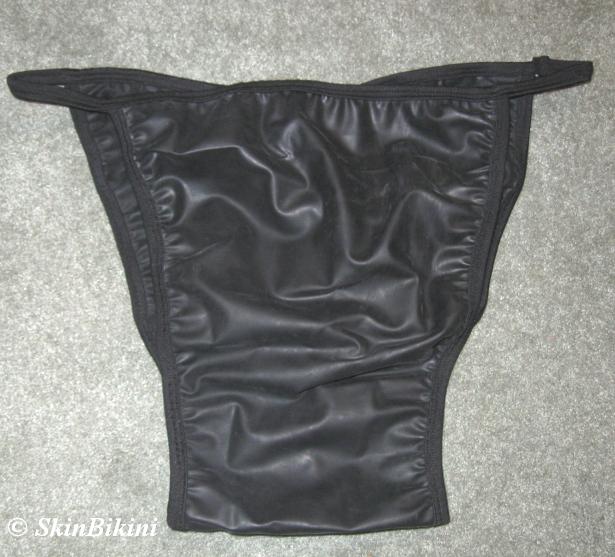 Very sexy and sassy bikini brief, slick. The entire brieft is made with 1 layer soft slippery latex rubber, very comfortable. This one is a simple bikini style and you can wear it anytime you like. The back is a 3/4 back. There is plenty of room in the front for a man's anatomy and this latex rubber material is very stretchy! Waist is stretchable with reinforcing stitches. The material is very durable and will last. Hand wash only.